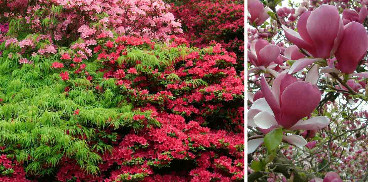 Acer palmatum- Rhododendron Crédit Photo GAP Dave Zubraski- Magnolia soulangeana ‘Rustica Rubra’