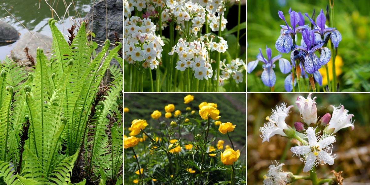 N’hésitez pas à planter la Matteuccia en bord de bassin, avec d’autres plantes qui apprécient les sols humides ! Matteuccia struthiopteris (photo Ryan Somma), Primula japonica ‘Alba’, Iris sibirica, Trollius europaeus et Menyanthes trifoliata (photo Olivier Pichard)