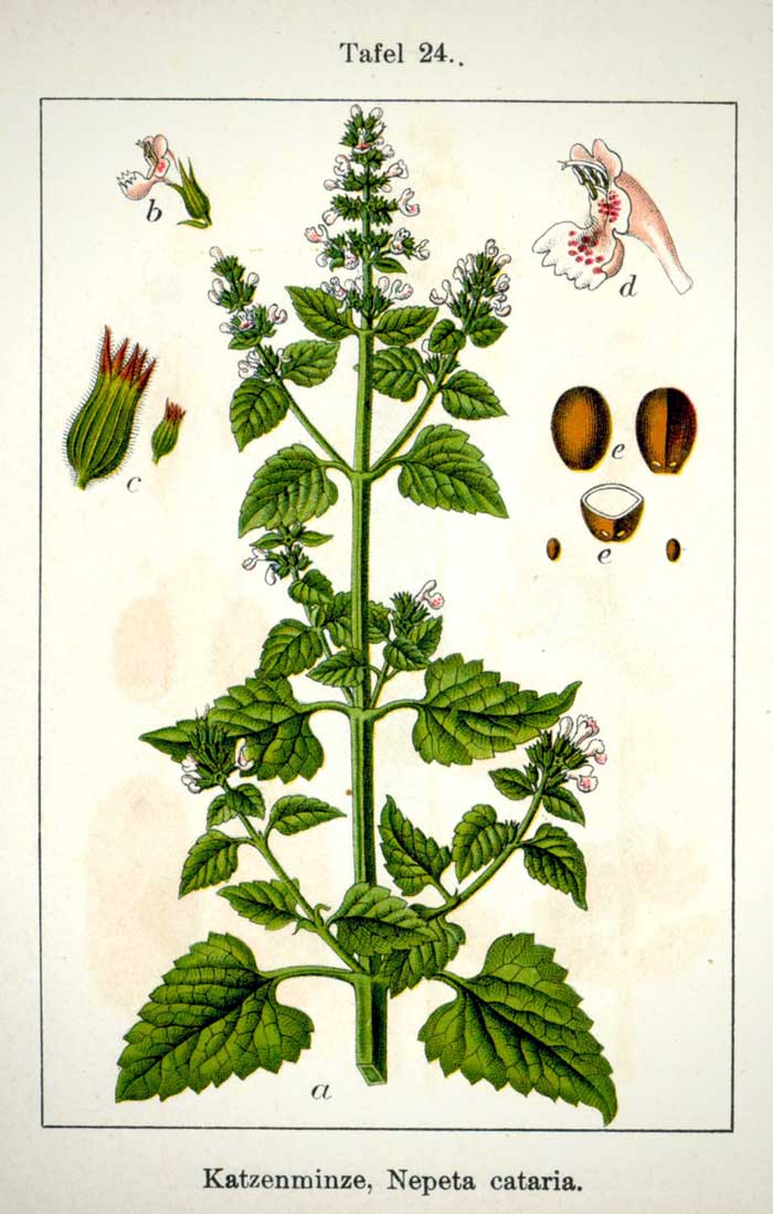 En cultivant le népéta, vous pourrez remarquer que les chats aiment s’y rouler, se coucher dessus, et mâcher les feuilles. Cette plante semble avoir un effet aphrodisiaque sur eux, les plongeant temporairement dans un état euphorique ! Cette réaction serait héréditaire, ainsi, certains chats ne sont pas réactifs. On estime qu’environ les deux tiers des chats y seraient sensibles. Le Nepeta cataria est celle qu’ils préfèrent (c’est la véritable « Herbe à Chat »), bien que d’autres espèces aient un effet comparable sur eux (Nepeta grandiflora, Nepeta faassenii…). La substance chimique (terpène) qui agit sur les chats est le nepetalactone. Même séchées, les feuilles restent attractives pour les chats ! Vous pouvez les récolter et frotter les feuilles contre leurs jouets. Bien que cette plante semble agir comme une drogue sur les chats, il n’y a aucun danger pour eux !