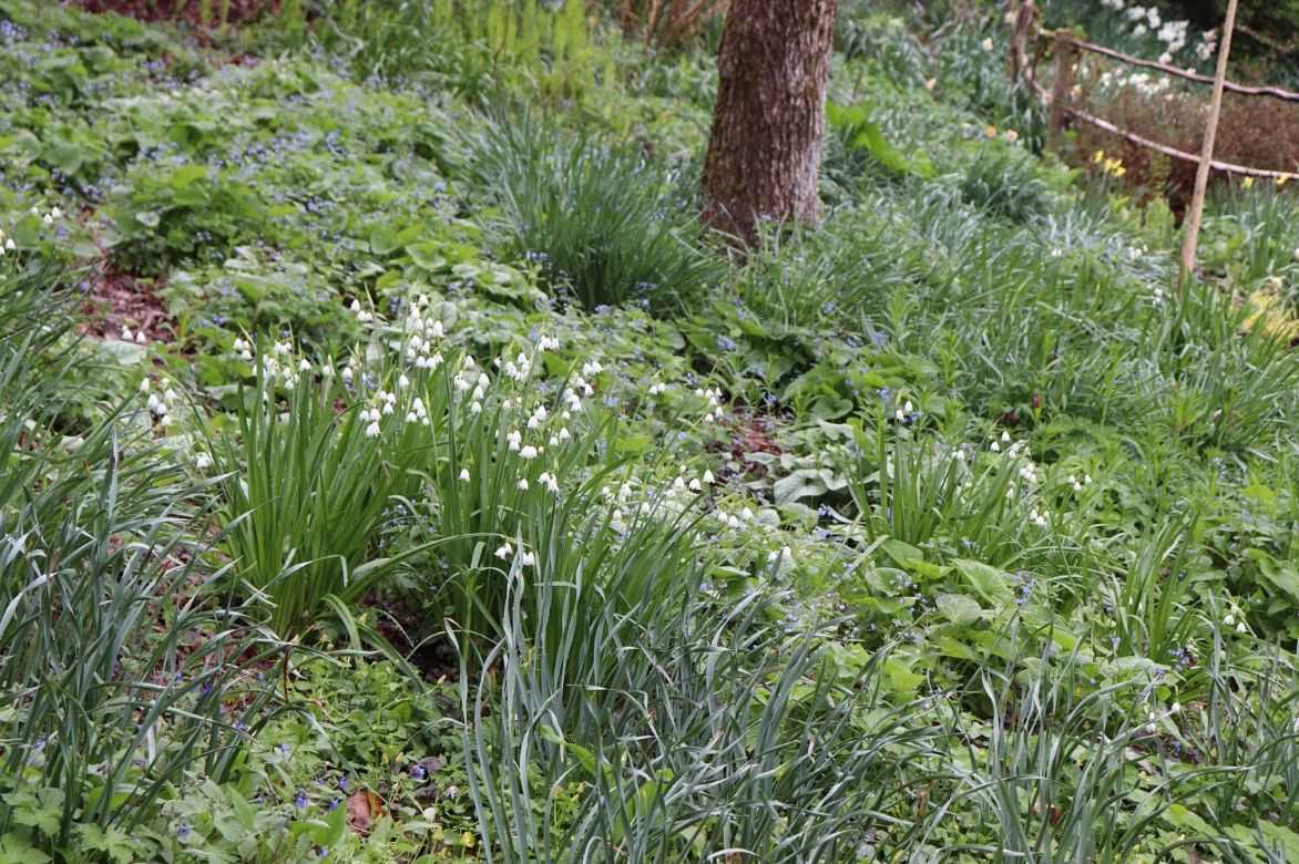 En massif, les petits bulbes de nivéoles se glissent partout entre les plantes et s’associent bien aux Cœurs de Marie, asarum, Heuchères, aux Bruyères d’hiver, primevères, Vinca minor, pensées ou encore au myosotis du Caucase.