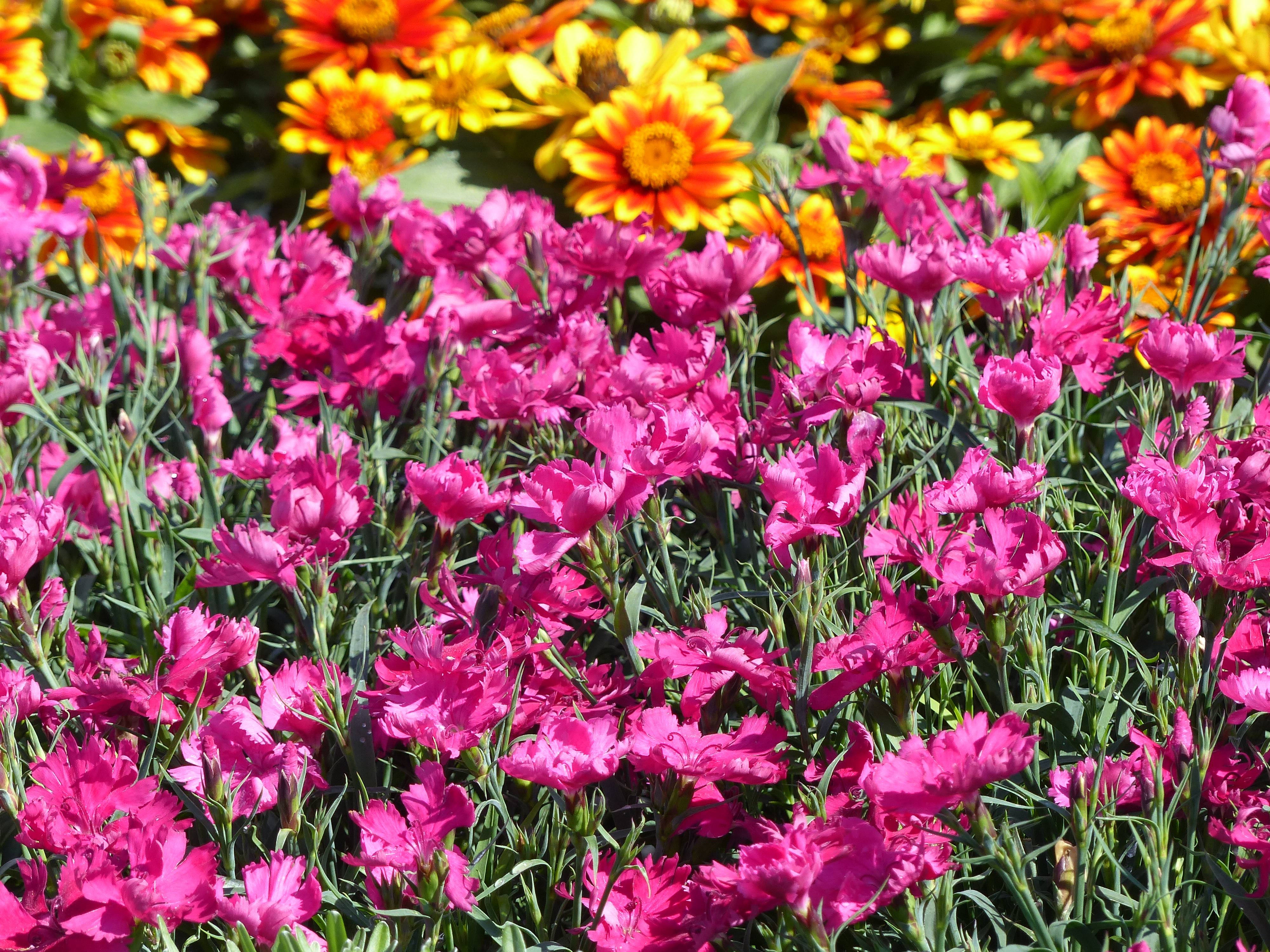 En massif, plantez les grands œillets en masse pour composer de belles scènes colorées avec des Népétas, Scabieuses, Coreopsis, Gaillardes naines, Cléomes ou Tabacs ornementaux.  Le feuillage argenté et persistant du Dianthus se mélange spontanément avec les feuillages gris-vert des Euphorbes et des Armoises, et apporte de la légèreté au voisinage d’estivales à grosses fleurs comme les Dahlias et les Echinacées.