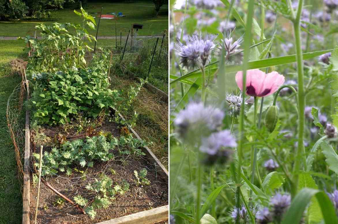 La phacélie a toute sa place au potager, ici au second plant (Photo : N. Doty), mais également dans des jardins naturalistes ou prairies (Photo : A. Slater)