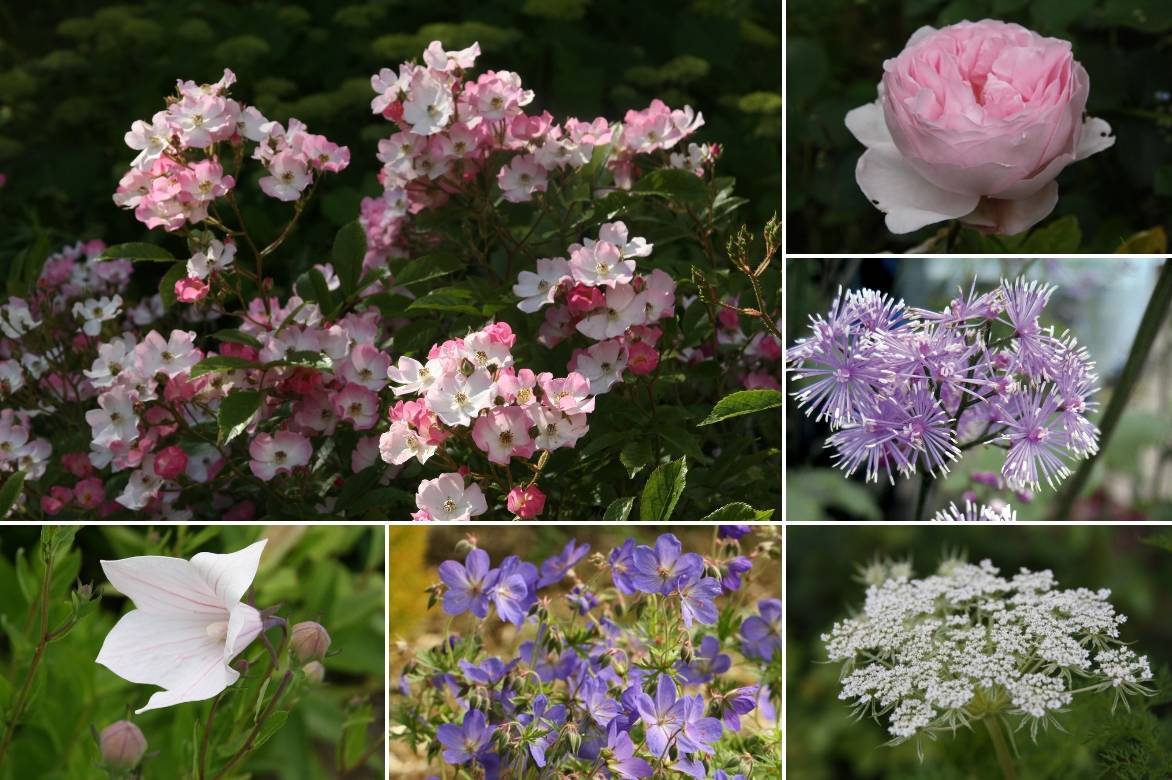 Ses fleurs des cultivars aux teintes pastel seront reines dans un jardin rose ou un jardin blanc ne pourront rivaliser avec les couleurs vives et criardes mais sont d’un bel effet avec les plantes à feuillage pourpré ou panaché de blanc comme les heuchères et les bugles. Il sera très beau rehaussé dans un environnement de feuillages verts, argentés ou glauques des fougères, des hostas, de géraniums vivaces, d’Echinops. Il offre un beau contraste avec les fleurs et feuilles vert-jaune des alchémilles et des graminées des pennisetum.