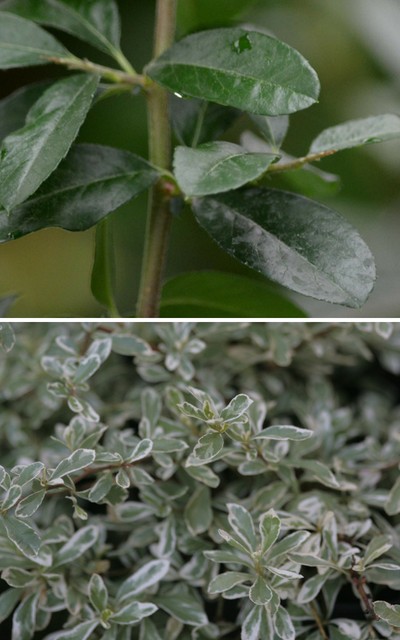 Le feuillage persistant est de forme lancéolée parfois arrondie au sommet, de 3 à 5 cm de long au bord finement dentelé. La nervure médiane marquée provoque un léger enroulement du limbe chez certains cultivars qui fait ressortir son aspect lustré vert vif en contraste avec le dessous vert mat. La variété naine ‘Sparkler’ livre un feuillage vert gris panaché de crème et de rose et des baies rutilantes rouge orangé. ‘Soleil d’Or’ se distingue par son feuillage vert foncé et ses baies jaune d’or.