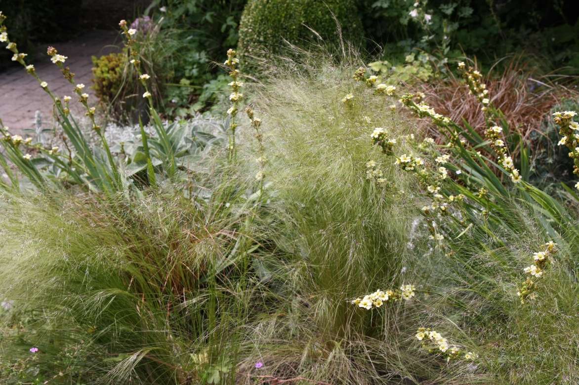 Les Stipa s’adaptent parfaitement aux côtés des fleurs de prairie dans les jardins de style naturel. Les épis dorés de la Stipa gigantea répondront dans un contraste de forme avec les grandes inflorescences plates d’achillées jaunes ou des grandes marguerites.