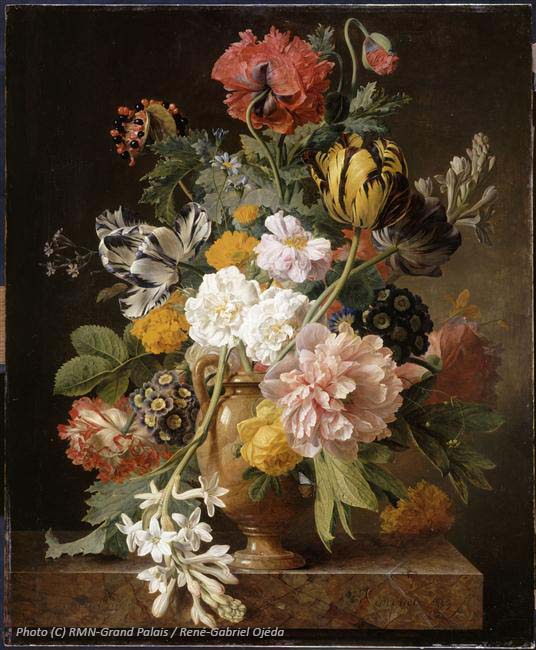 En 1807, Jan Frans Van Dael, peintre flammand spécialisé dans les natures mortes, peint un tableau intitulé “Vase de fleurs avec une tubéreuse cassée”. Au milieu d’un enchevêtrement de fleurs (tulipes, roses, pivoines, coquelicot…), se démarque une tubéreuse, brisée par le poids de ses fleurs. Ce memento mori (souviens toi que tu vas mourir) a pour but de rappeler au spectateur la fragilité de la vie humaine. Ce tableau est aujourd’hui exposé au Musée des Beaux- Arts de Lyon.