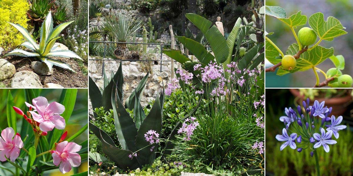 Vous pouvez tout à fait intégrer le Tulbaghia dans un jardin de style méditerranéen ! Agave mediopicta ‘Lutea’ / Laurier-rose (photo Challiyan) / Tulbaghia, agaves et strelitzia / Figuier / Agapanthe
