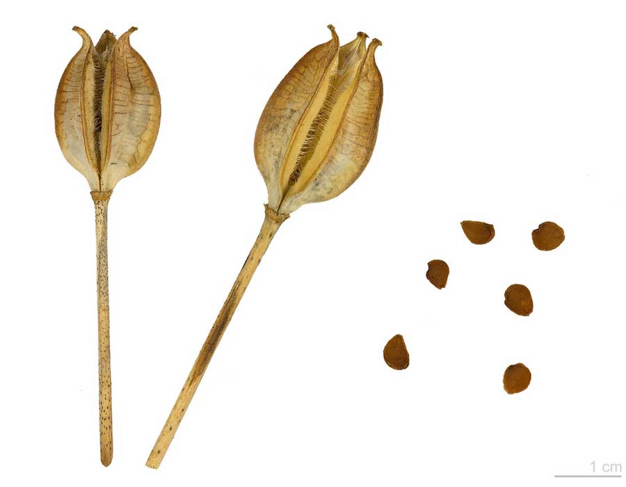Le fruit de la tulipe est une capsule allongée, qui à maturité s’ouvre en trois parties pour libérer de nombreuses graines brunes et aplaties.