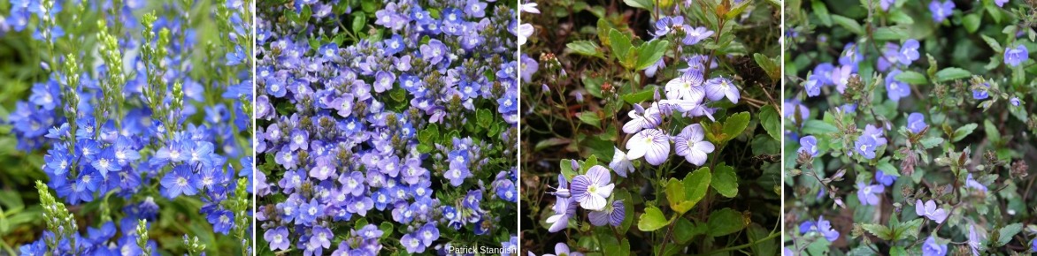 Quelques véroniques couvre-sols : Veronica prostrata, Veronica liwanensis, Veronica petraea ‘Madame Mercier’, Veronica umbrosa ‘Georgia Blue’