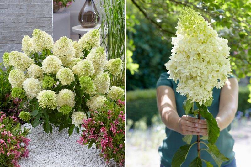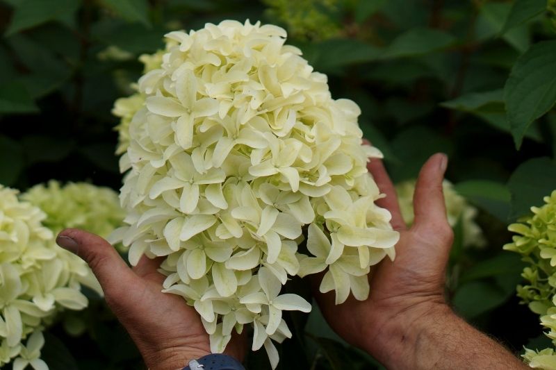 Cet hortensia très prometteur se distingue des autres variétés de paniculata par la taille hors-norme de ses inflorescences et la curieuse forme courbée de ses fleurs. Proche du célèbre cultivar 'Limelight', cette nouvelle obtention dispose d'une stature plus modeste lui permettant de s'inviter dans les petits jardins et sur les terrasses.