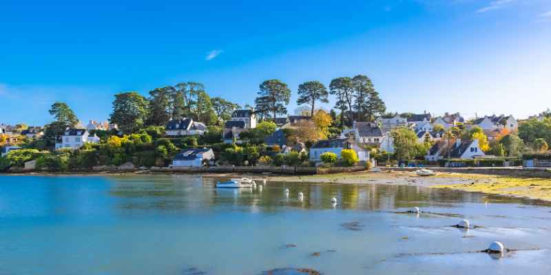 L'île aux Moines, située dans le golfe du Morbihan en Bretagne, est la plus grande île du golfe. D'une longueur de 17 km, l'île se découvre en environ 4 h 15 de marche. Ce joyau breton offre une diversité floristique remarquable grâce à son climat doux et océanique. Les hivers y sont doux, sans gelées sévères, et les étés sont tempérés. Ce climat maritime modéré est similaire à celui des régions méditerranéennes, où ces plantes prospèrent naturellement. Les forêts de chênes et de pins maritimes dominent le paysage et peuplent le célèbre Bois d'Amour, situé au nord de l'île. On y trouve également des prairies de fleurs sauvages, des landes de bruyère et des haies bocagères typiques.