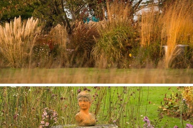 L'automne est la saison idéale pour procéder aux réflexions, changements, nouveaux aménagements ou plantations supplémentaires. D'ailleurs, en ce moment, les jardiniers sont en pleine sélection d'arbres non sophistiqués mais dotés de belles teintes automnales. Il se pourrait donc bien que d'autres Bouleaux, des Charmes et des Chênes viennent bientôt enrichir le jardin. Car si Michèle adore le graphisme et la belle présence des graminées, elle aime également jouer avec les textures, les couleurs et les contrastes. Dans tous les cas, elle n'envisage son jardin que sous un angle qui se veut respectueux de l'environnement. Ainsi, les massifs sont désherbés manuellement, l'arrosage se fait uniquement avec l'eau récupérée, et tout les « déchets » du jardin y sont directement réinvestis, comme paillage, en compost, ou même pour composer des talus. Les sujets sélectionnés sont plantés jeunes, car ils reprennent généralement beaucoup mieux que des exemplaires plus matures.