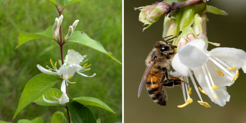 Le chèvrefeuille d'hiver est apprécié des abeilles auxquelles il fournit une nourriture précieuse mais également des oiseaux qui consomment ses baies en automne.