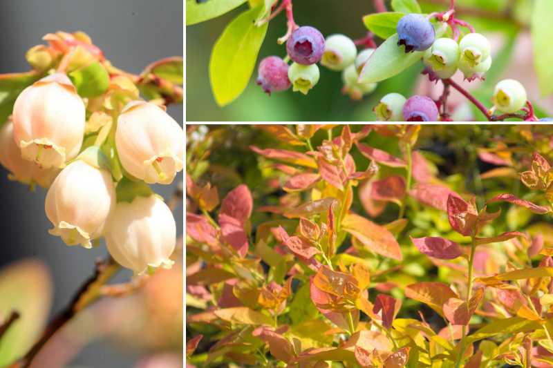 De juillet à août, ce myrtillier américain ou “bleuet” produit de gros fruits bleus, sucrés et parfumés. Enfin, c’est en automne que l’arbuste se remarque le plus, son feuillage caduc prend alors une superbe teinte orange cuivrée avant de tomber.