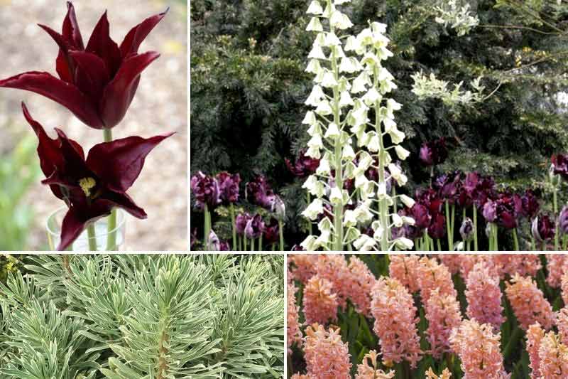 La tonalité puissante et pure de 'Sarah Raven' permet des harmonies subtiles, en association par exemple avec la Fritillaire de Perse Fritillaria persica 'Ivory Bells' qui dressera ses hautes hampes de cloches blanches sur leur fond sombre. Associez-leur de belles masses d'Euphorbe characias 'Wilcott' au feuillage panaché et lumineux et de douces et parfumées Jacinthes 'Sweet Invitation' rose-orangées.