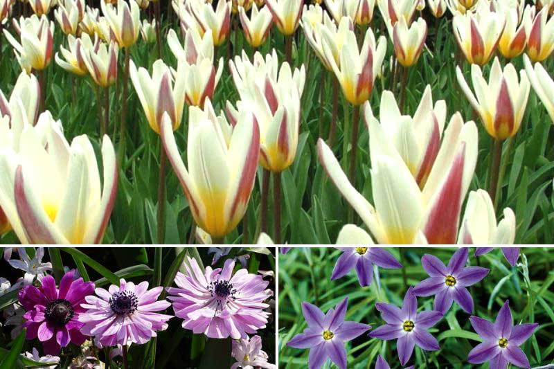 Plantez cette ravissante nouveauté dans un ensemble associant l'Anemone coronaria double 'Admiral' qui arbore un superbe coloris vieux rose teinté de fuchsia, autour d'un cœur noir et les Étoiles de printemps Ipheion uniflorum 'Froyle Mill' qui offrent une multitude d'étoiles violet vif au début du printemps.
