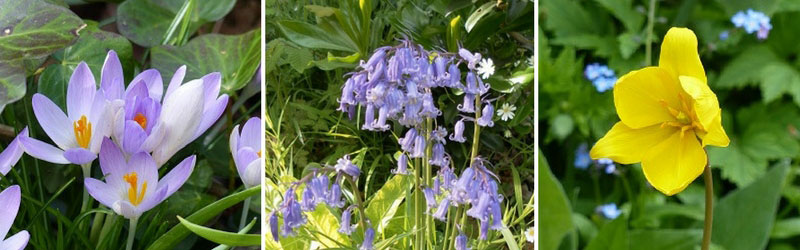 Crocus tommasinianus - Jacinthe des Bois (Hyacinthoides non-scripta) - Tulipe des bois (Tulipa sylvestris)