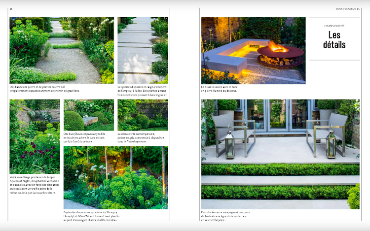 Les exemples présentés sont très variés et correspondent à des situations très différentes : jardins en pente ou sur un toit, intégration d'une piscine ou d'un espace dédié aux enfants, jardin méditerranéen ou simple cour, ambiance très sereine et épurée, …