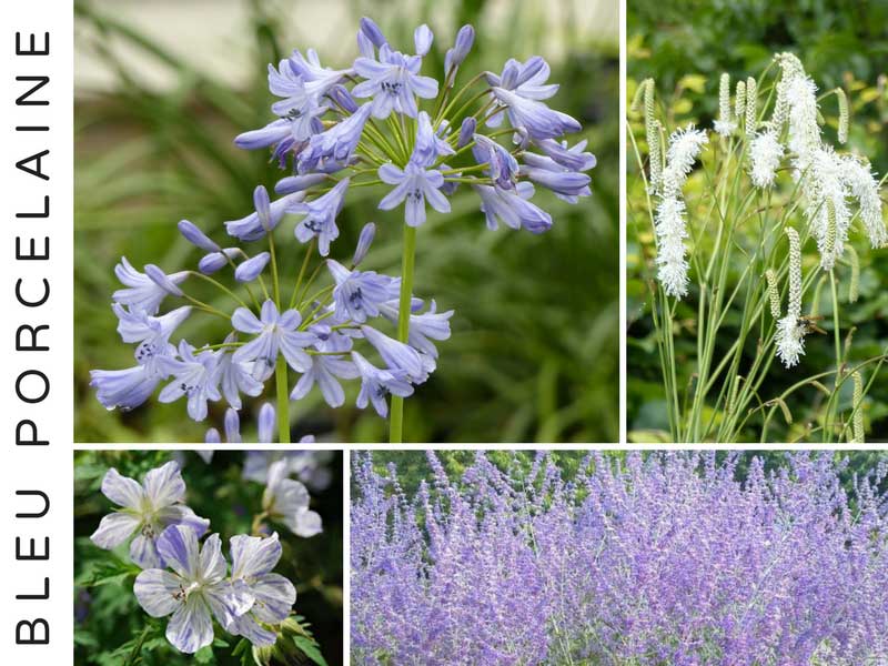 Agapanthe Docteur Brouwer - Sanguisorba tenuifolia Alba - Géranium vivace pratense Splish Splash - Perovskia atriplicifolia Blue Spire