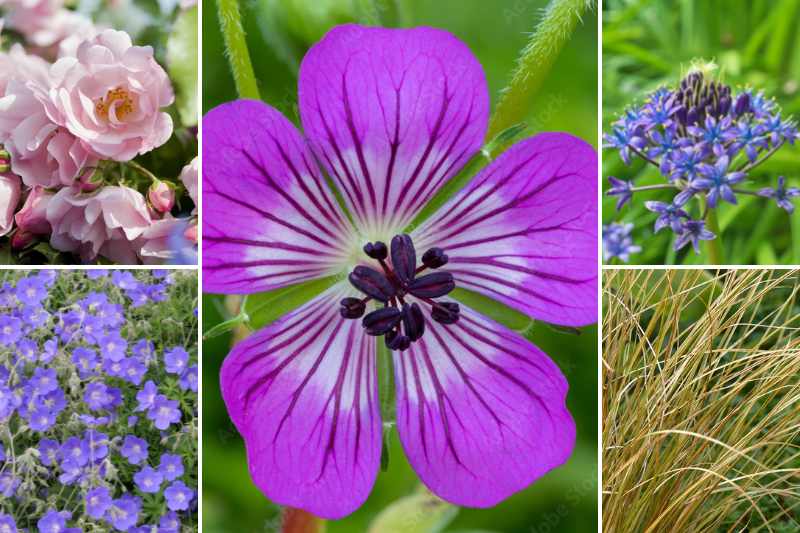 On pourra envisager ce très beau géranium vivace le long d'une allée, ou dans un massif d'esprit romantique, entouré de quelques beautés qui se succèderont au fil des saisons, lui-même assurant la trame du décor : des rosiers rose clair, comme le gracieux Décorosier 'Maeva' ou le rosier buisson 'Jardin des Tuileries', une jolie graminée comme l'Hakonechloa macra ou le Carex comans 'Milk Chocolate' aux reflets bronze, sans oublier le Geranium 'Rozanne', en clin d'œil, et une bulbeuse comme les scilles du Pérou pour apporter encore plus d'éclat au printemps.