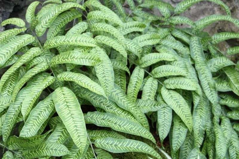 Malgré son apparence exotique, elle pousse vraiment toute seule, résiste bien à la sécheresse (même en pot, je ne l’ai presque jamais arrosé) et se montre tout à fait rustique. J’aime le graphisme incroyable de ses frondes, étroites et effilées, qui rappellent le feuillage des bambous. De couleur vert foncé, elles sont marquées par des traits obliques vert clair – jaune, et semblent ainsi « zébrées ». Ainsi, en plus d’être facile à cultiver et très original, le Coniogramme est l’une des fougères les plus graphiques !