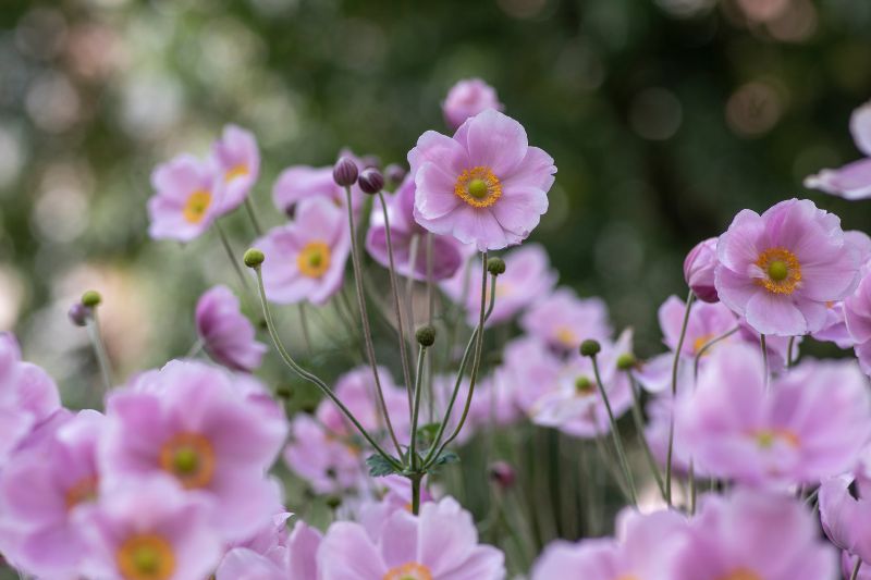 De belles anémones du Japon au jardin