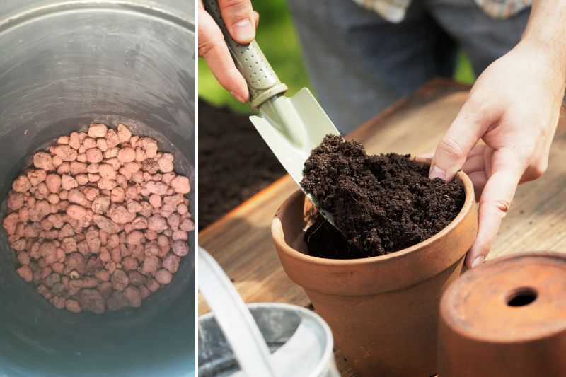 préparation des pots pour plantation