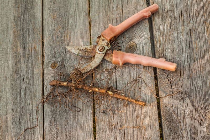 découpe de la racine au sécateur