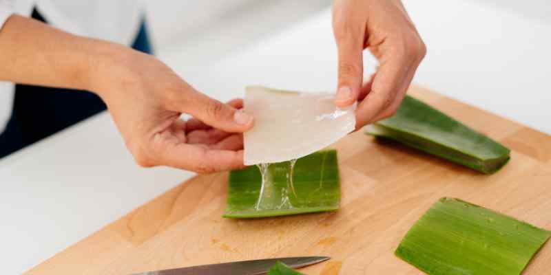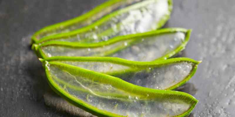 La récolte se fait en coupant simplement chaque base de feuille à l'aide d'un couteau bien aiguisé. Lavez votre feuille. Sur une planche, supprimez les bords épineux de la feuille pour ne pas vous blesser. Pour extraire le gel, il est primordial de débarrasser les feuilles de leur première enveloppe. Coupez la feuille en plusieurs tronçons et passez la lame du couteau le long de l'enveloppe externe coriace pour récupérer facilement la pulpe. Rincez ce gel sous l'eau claire pour ôter un maximum de latex amer présent, issu de la paroi interne des feuilles (reconnaissable à sa couleur jaune, riche en aloïne, c'est lui qui a des propriétés laxatives !). Il ne doit plus rester que du gel transparent sans traces de vert ou de jaune.