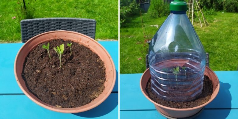 - Une cloche de croissance ou une bouteille en plastique sans fond ou un sac en plastique