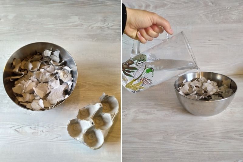 - Découpez le papier (ou carton) en morceau dans un saladier.