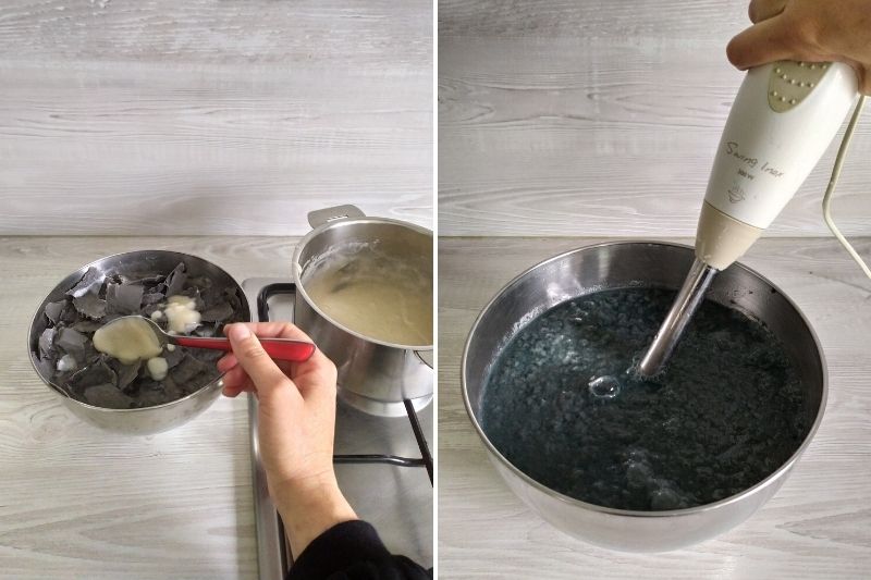 - Une fois le mélange bien homogène, rajoutez 200 ml d'eau et mélangez de nouveau.