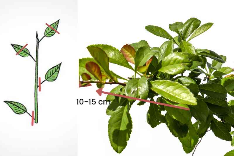 • Choisissez la bonne tige : prélevez un rameau semi-aoûté d’environ 15 cm, dépourvu de fleurs ou de fruits.