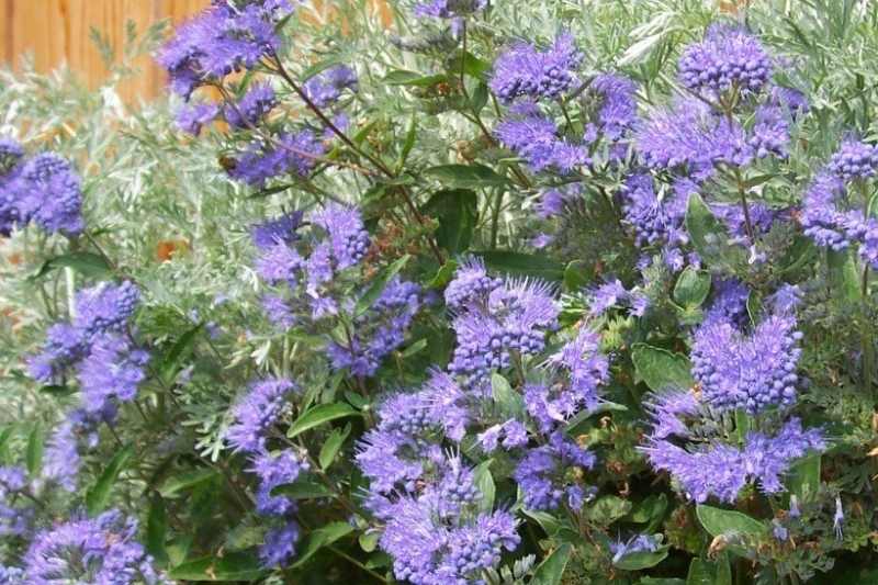Le Caryopteris clandonensis 'Heavenly Blue' est une variété très florifère au beau feuillage vert de gris