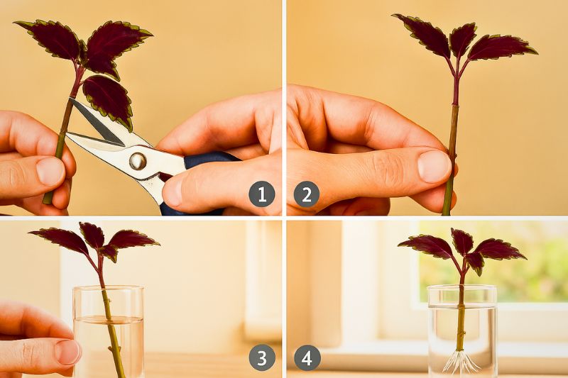 Astuce : privilégiez les tiges jeunes et non fleuries, et veillez à ce qu’un nœud soit immergé pour favoriser l’apparition des racines.