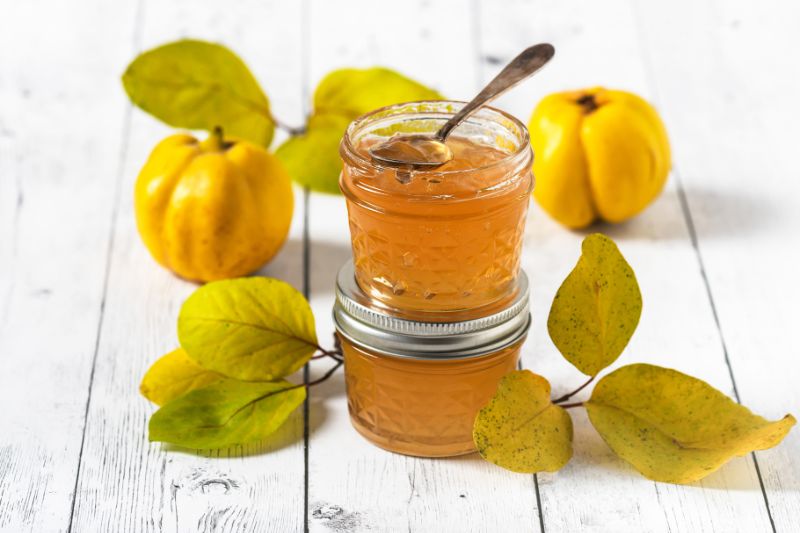 La gelée de coing, avec sa texture soyeuse et son goût à la fois doux et légèrement acidulé, est délicieuse tartinée sur des toasts ou des scones, accompagnée d'une tasse de thé ou de café. Sa saveur unique rehausse également le goût des croissants et des pains au chocolat, apportant une touche fruitée à ces pâtisseries.