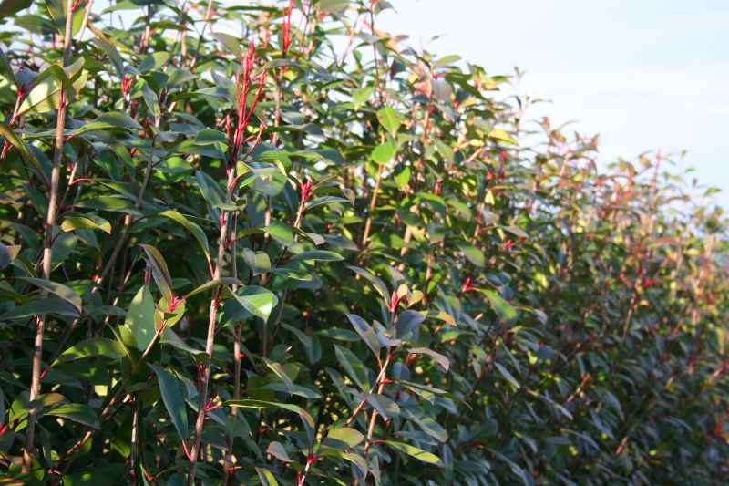 - Photinia x fraseri 'Carré Rouge' : Cette variété est naturellement plus dense et plus colorée que celle du (trop) classique 'Red Robin'.