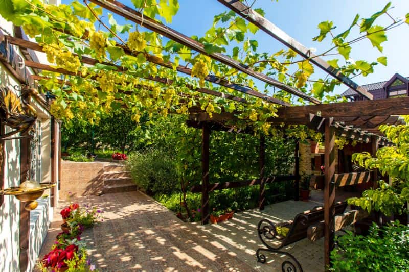 La pergola est un très bon choix pour cultiver la vigne. Non seulement la vigne offrira une ombre bienvenue sur une terrasse exposée au soleil, mais elle pourra aussi étendre ses sarments horizontalement, favorisant ainsi la production de raisins.