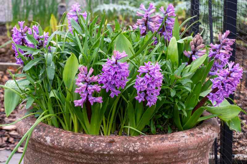 - Comme pour les bulbes plantés au jardin, pensez à associer vos bulbes printaniers à des vivaces déjà en place dans le pot comme des giroflées ou des géraniums vivaces, et positionnez-les sur le pourtour du pot, ou en plantant en même temps en automne, période idéale pour le faire.