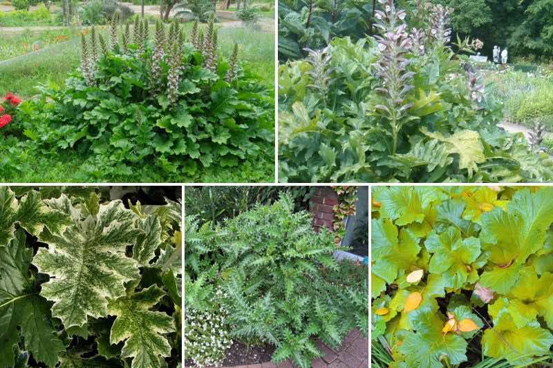 - l’acanthe à feuilles molles (Acanthus mollis), l’une des plus connues avec sa silhouette imposante et ses fleurs blanc-pourpre, dont la hampe peut atteindre jusqu’à 2 mètres de hauteur ;