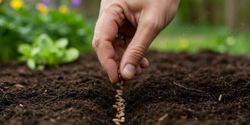 - Semis en pleine terre : Semez les graines à la volée ou en lignes espacées de 25 à 30 cm. Recouvrez-les d’une très fine couche de terre (1 à 2 mm seulement), car elles ont besoin de lumière pour bien germer. Arrosez ensuite avec un arrosoir à pomme fine pour ne pas les déloger.