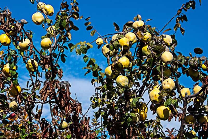 Quoi qu'il en soit, lorsque vous éclaircissez et ébranchez votre cognassier, conservez les branches les plus droites et ne touchez pas trop à l'arcure. Le cognassier a naturellement tendance à plier sous les poids des fruits.