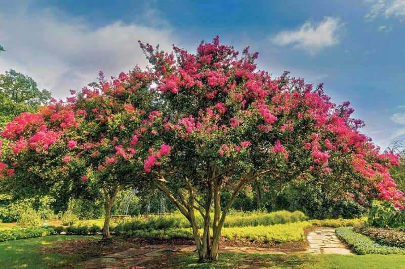 Le Lagerstroemia fleurit sur les nouvelles pousses de l’année. Pour cela, raccourcissez les branches de l’année précédente d’un tiers. Cette taille stimule la croissance de nouvelles pousses qui porteront les fleurs en été.