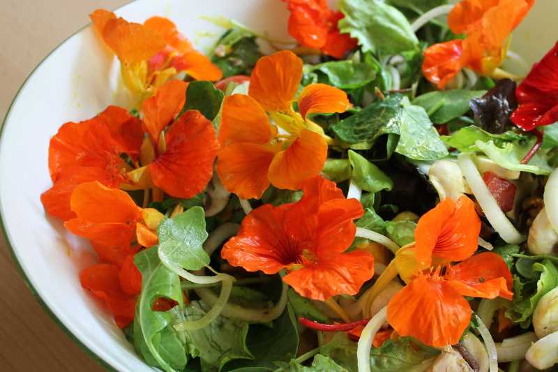 salade avec fleurs feuilles de capucines