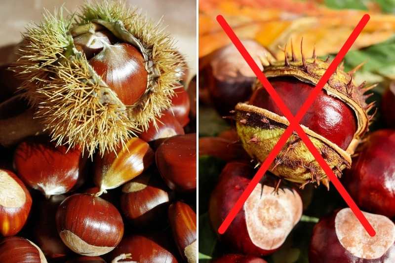 ATTENTION ! Il ne faut surtout pas confondre la châtaigne avec le marron d’Inde (fruit du marronnier) dont la graine est toxique.