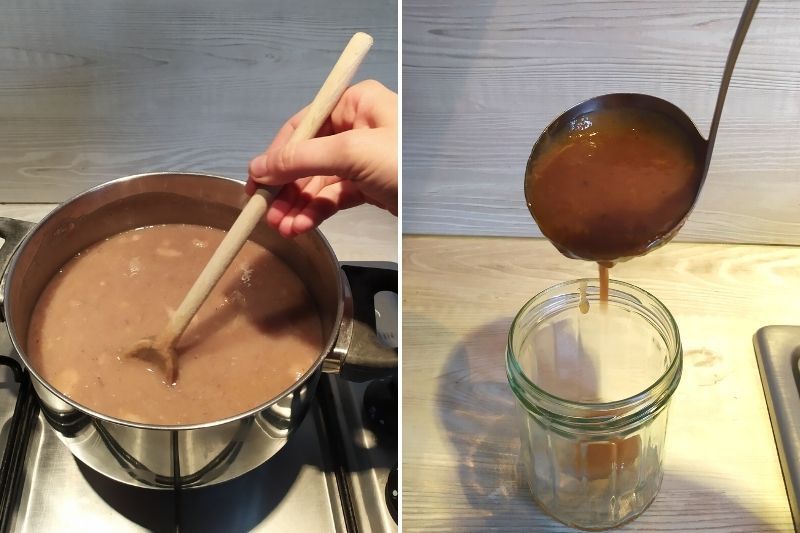 6/ Porter l’ensemble à ébullition, puis faites cuire à feux doux durant 20 minutes. Pensez à remuer fréquemment avec une cuillère en bois. Si de l’écume se forme, retirez-la avec une écumoire.