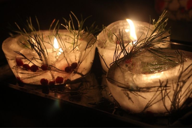 - Pour une nuit de Noël féérique, vous pouvez également créer des portes bougies en glace pour décorer vos allées et qui époustoufleront vos invités.