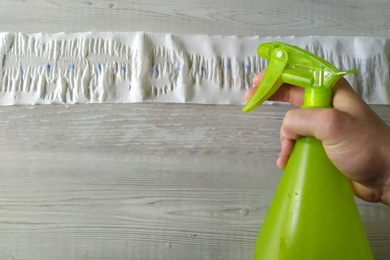 3- Humidifiez le papier toilette à l'aide d'un vaporisateur d'eau.