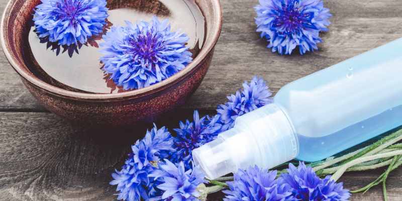 - le bleuet (Centaurea cyanus) a une action décongestionnante et apaisante, souvent utilisé pour soulager les yeux et paupières fatigués