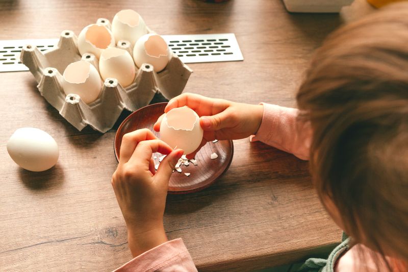 3- Si besoin, agrandissez l'ouverture de la coquille. C'est un bon exercice de dextérité et de délicatesse pour votre enfant !